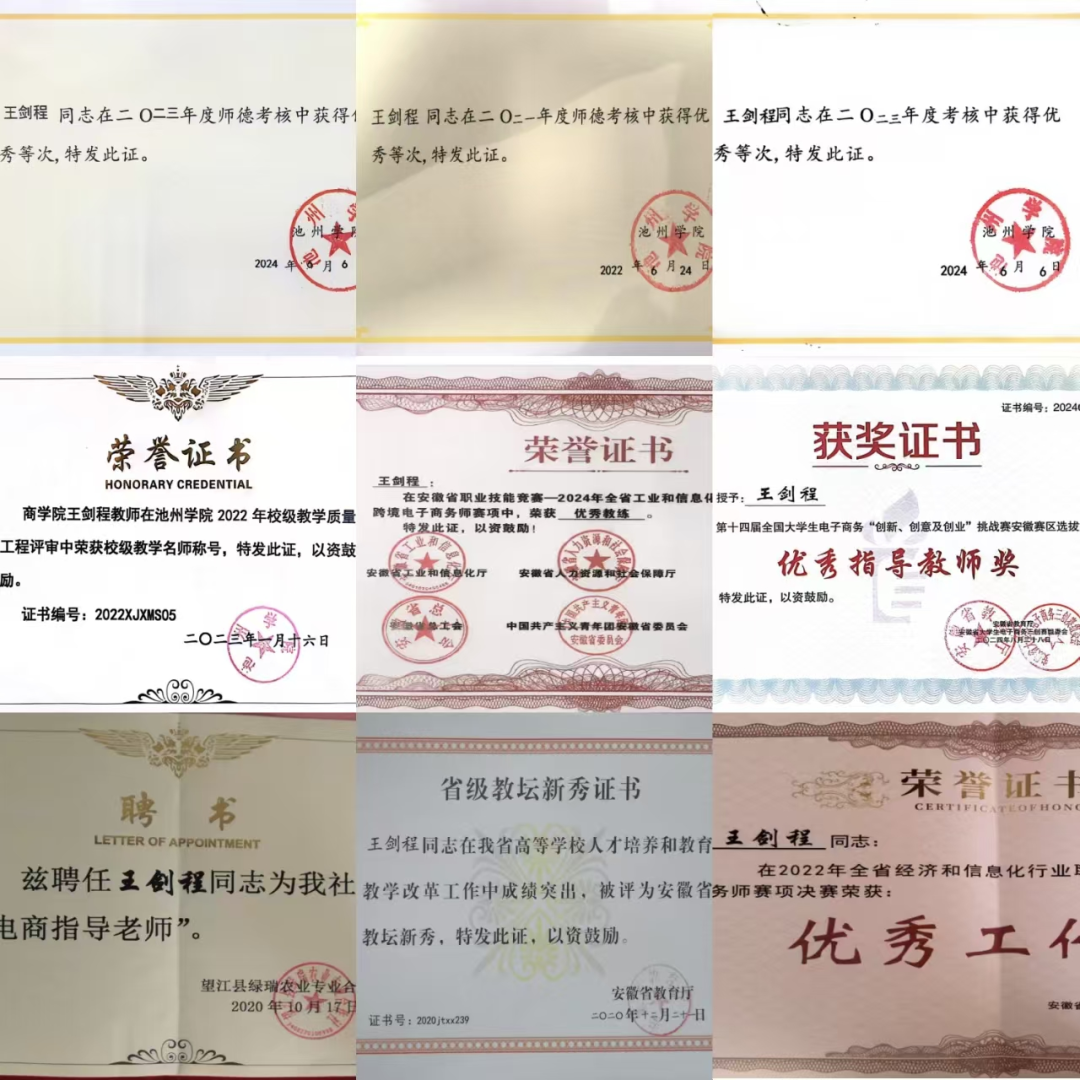 2011年7月,王剑程登上池州学院的讲台,面对一群对电子商务既充满好奇又略显懵懂的学生。当时的他未曾预料到,自己不仅将亲身经历中国电商发展的黄金十年,更会成为这场变革中的育人先锋。2016年,王剑程担任电子商务教研室主任,面对专业师资匮乏、实践教学薄弱、学生就业对口率低的严峻挑战。他带领团队在短短三个月内走访长三角地区20多家企业,探索出“三实三新”人才培养模式(实践教学夯实基础、实战项目锤炼能力、实习就业无缝对接;新商科理念引领、新技术应用驱动、新业态精准对接)。通过应用这种创新的人才培养模式,最终在教研室全体专业教师的共同努力下,电子商务建设取得了显著成果:2018年在安徽省专业评估中,从全省20余所高校同类专业中脱颖而出,荣获A-评级(第5名);2021年更成功获批省级一流专业建设试点。